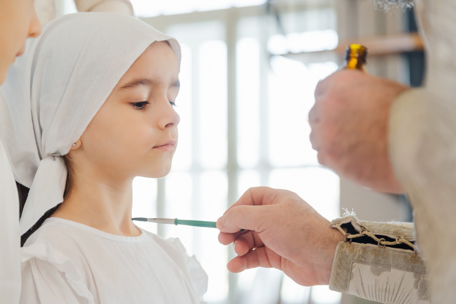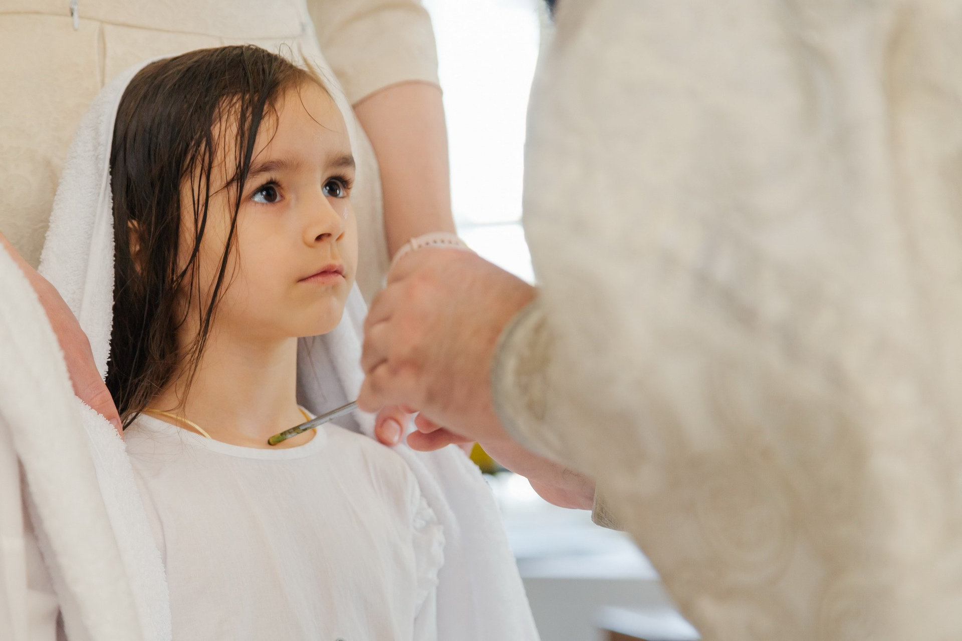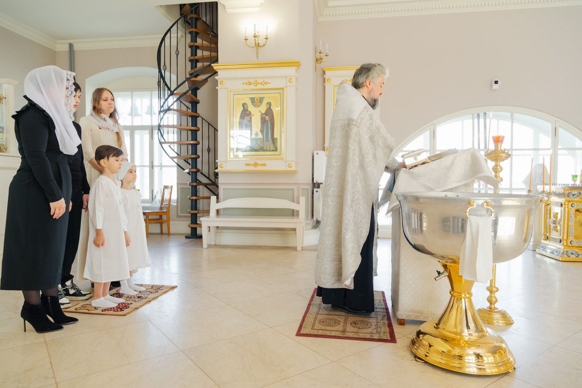 Теперь немного о самом крещение. Проводят на втором этаже, помещение светлое. Стоимость индивидуального крещения 4000 руб. Из минусов, что мне не совсем понравилось, это бабушки смотрительницы, которые устраивают хаос при крещение. Бродят, что-то носят. Могут встать прям перед камерой и мешать снимать. Так же не понравилось, что позади места где стоят для крещения, находится лавка, поэтому вид получается снимаемых вместе с церковной лавкой, бабушкой в углу помещения, столом и винтовой лестницей. Приходится очень внимательно подгадывать ракурсы. Но если вас это не смущает, то неплохое место для крещения.