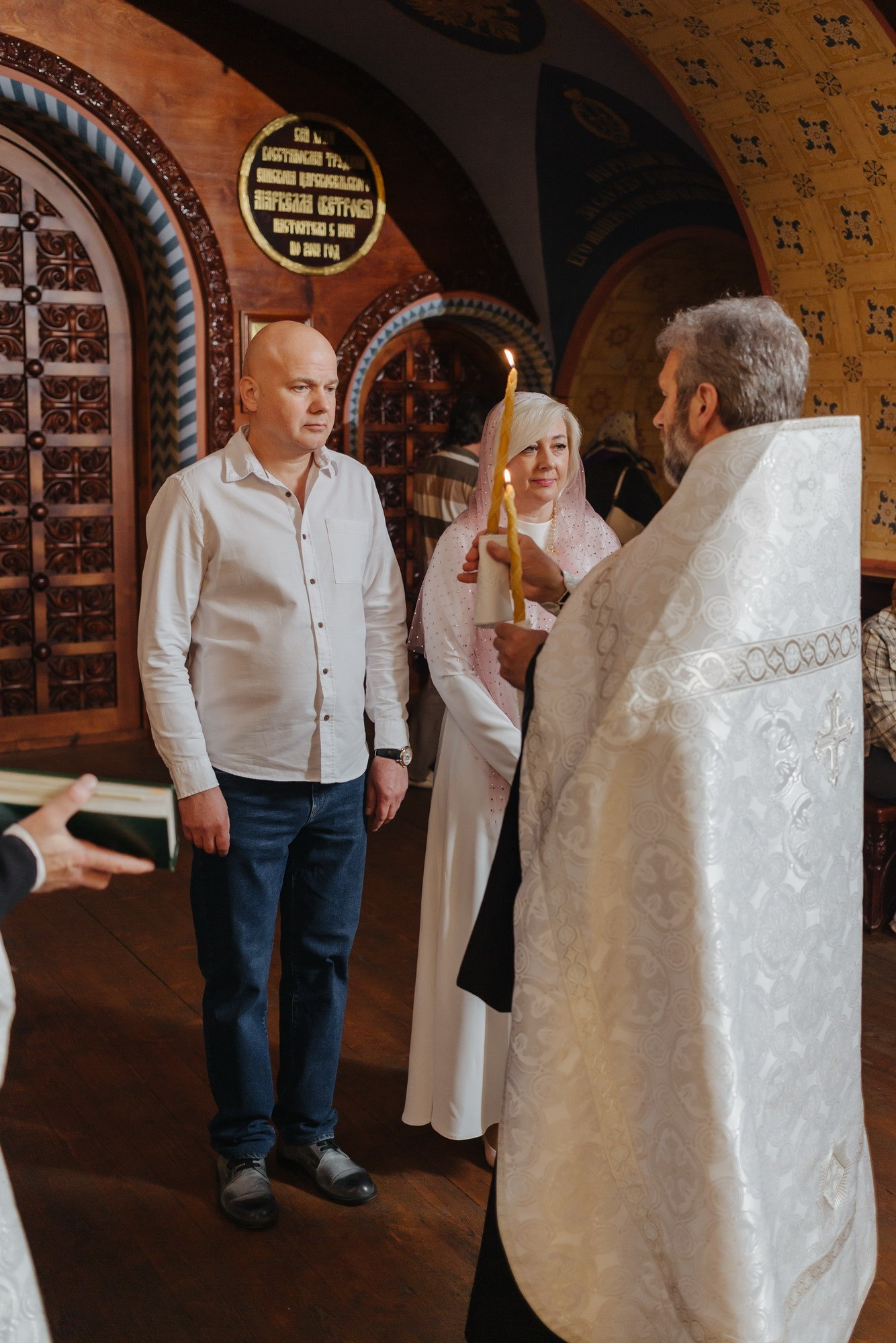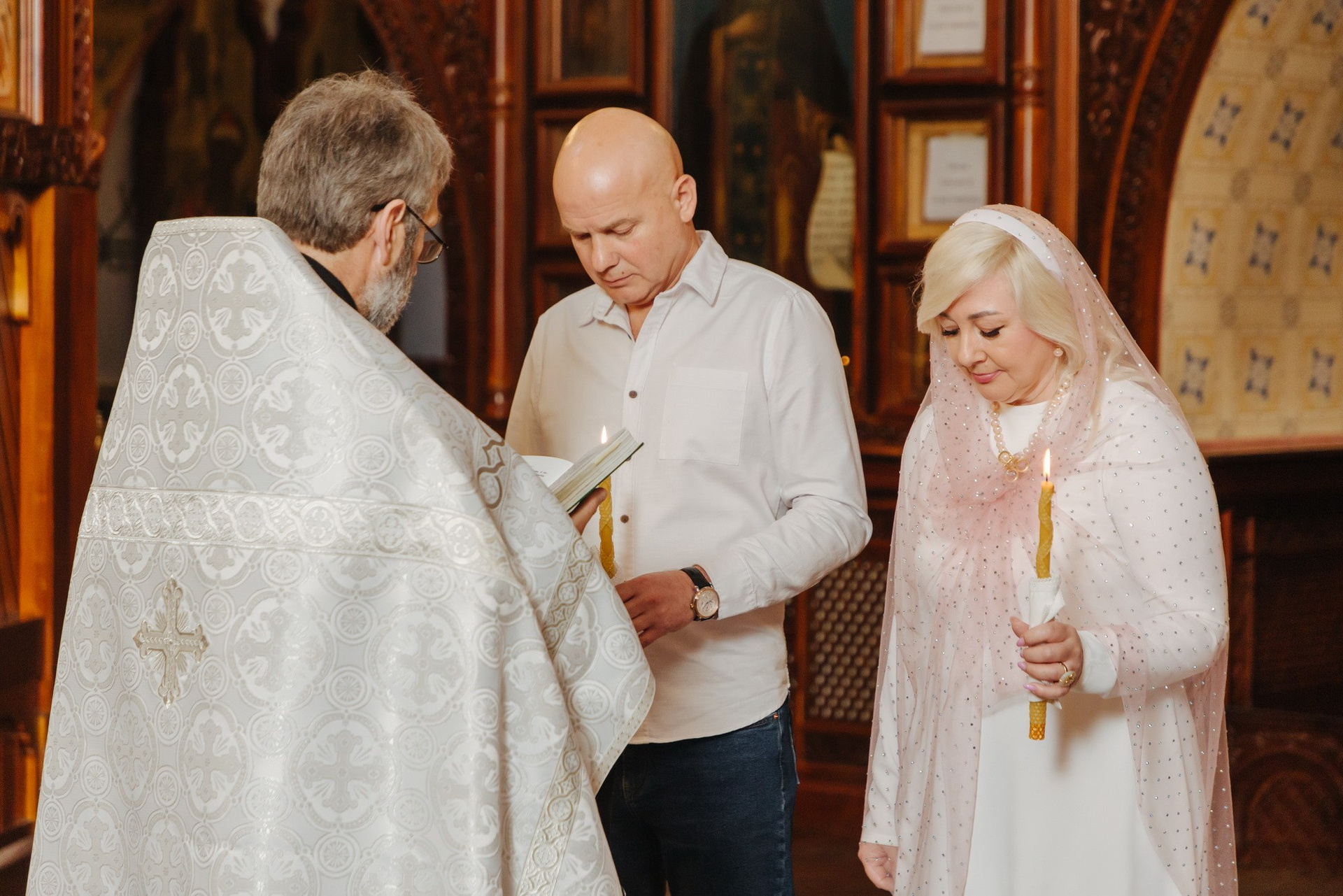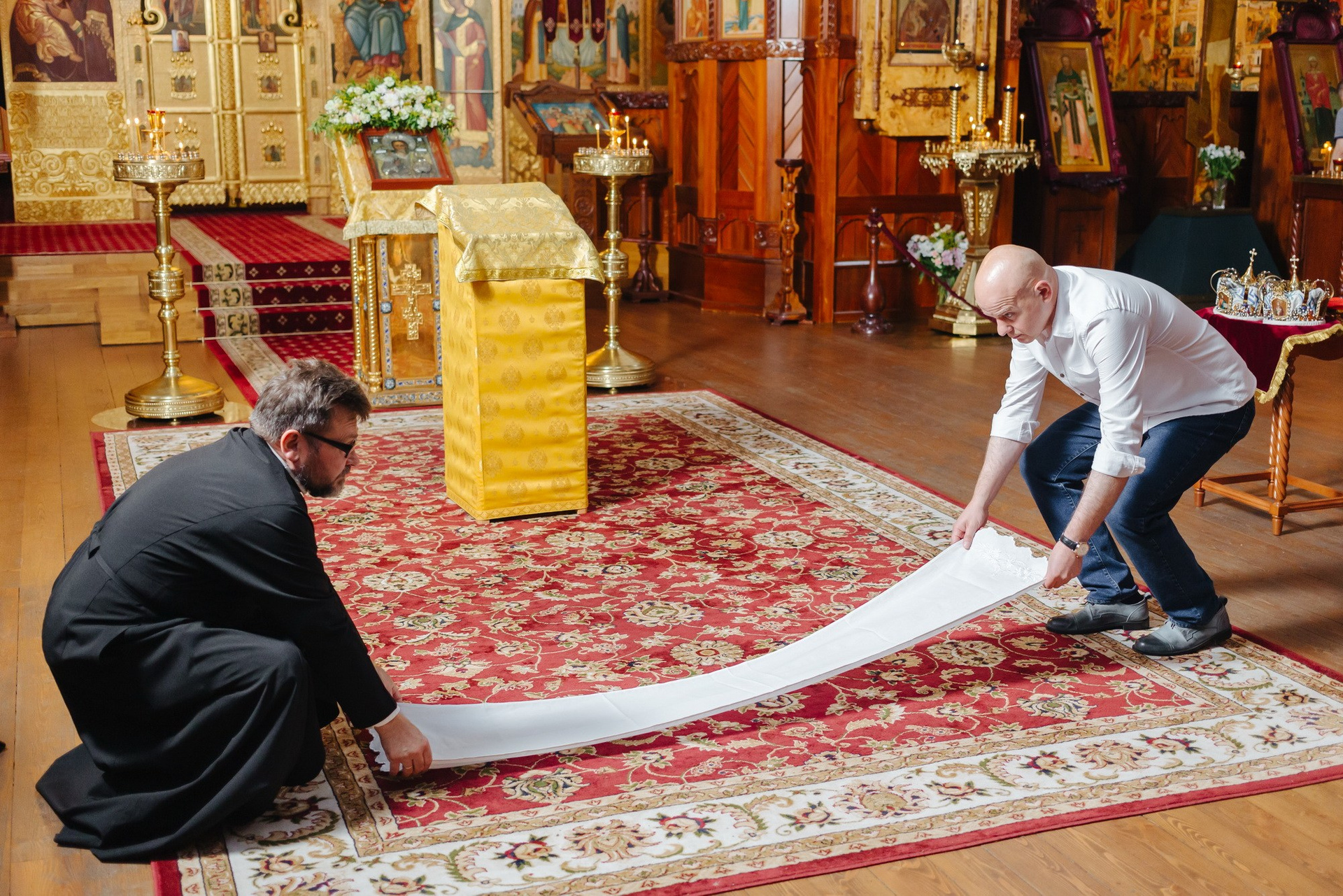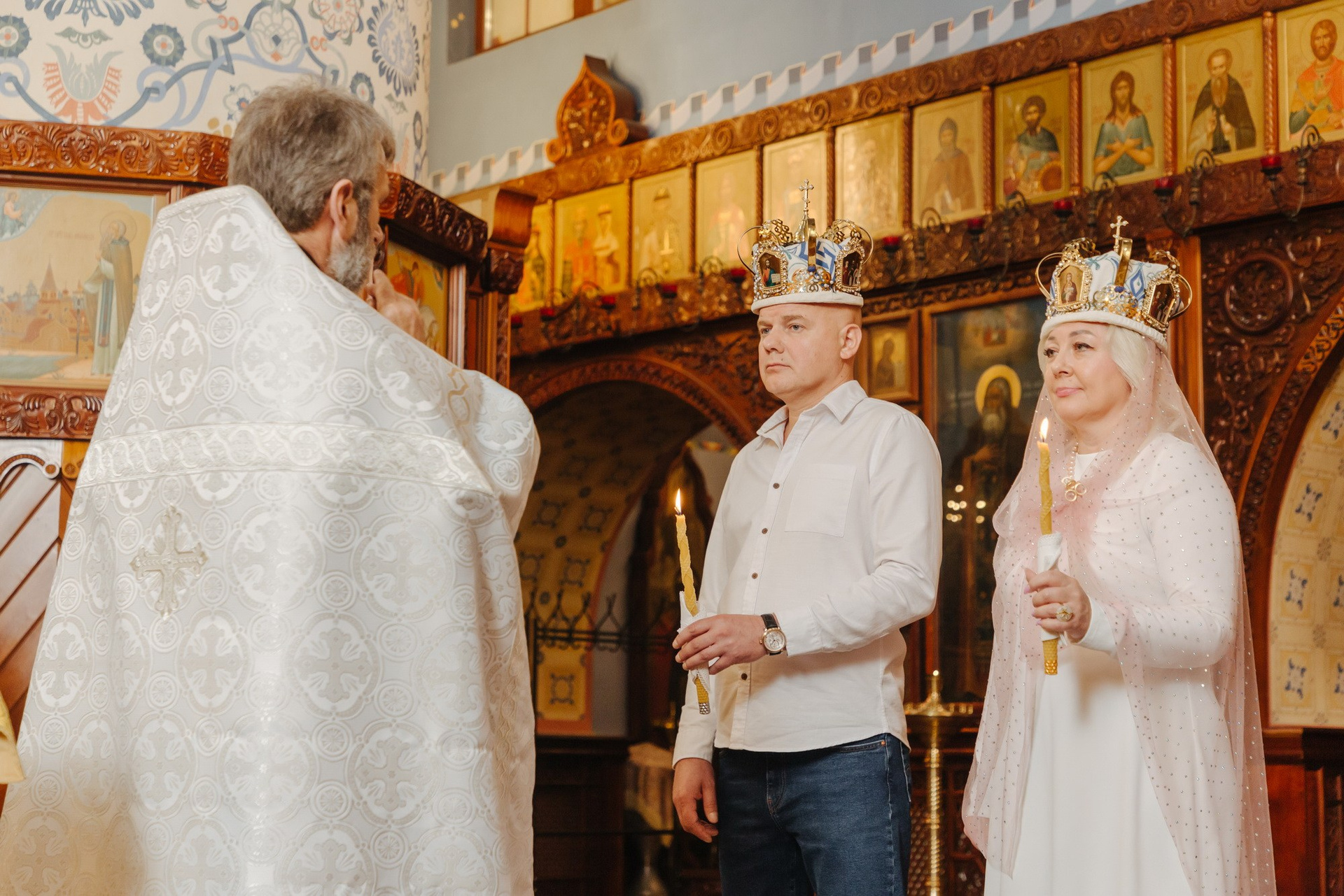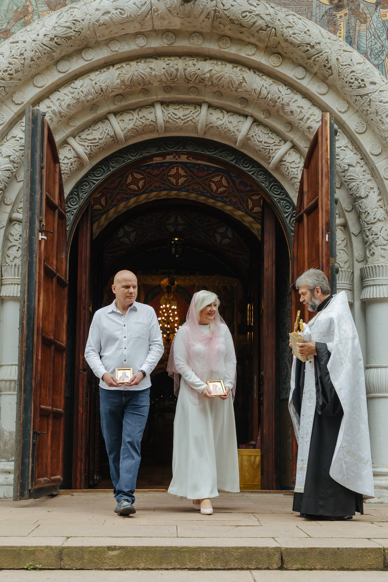 Венчание проходит в верхнем храме собора. Помещение светлое, просторное. Посетителей не так много (будни), продолжительность венчания порядка 45 минут. Стоимость на 2025 г 18 000 руб. Также возможно проведения венчания в нижнем храме собора, тут цена была озвучена 40 000 р.