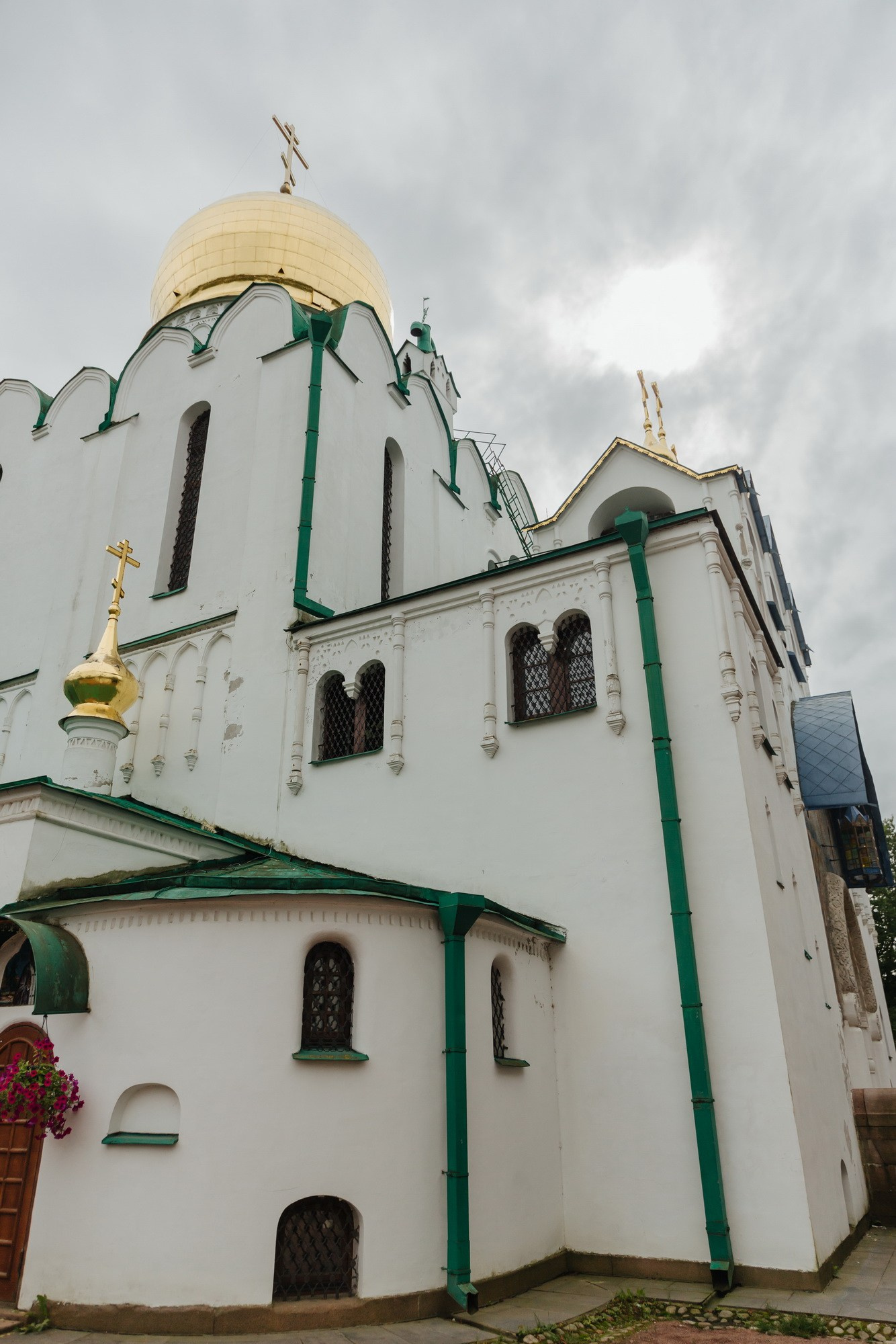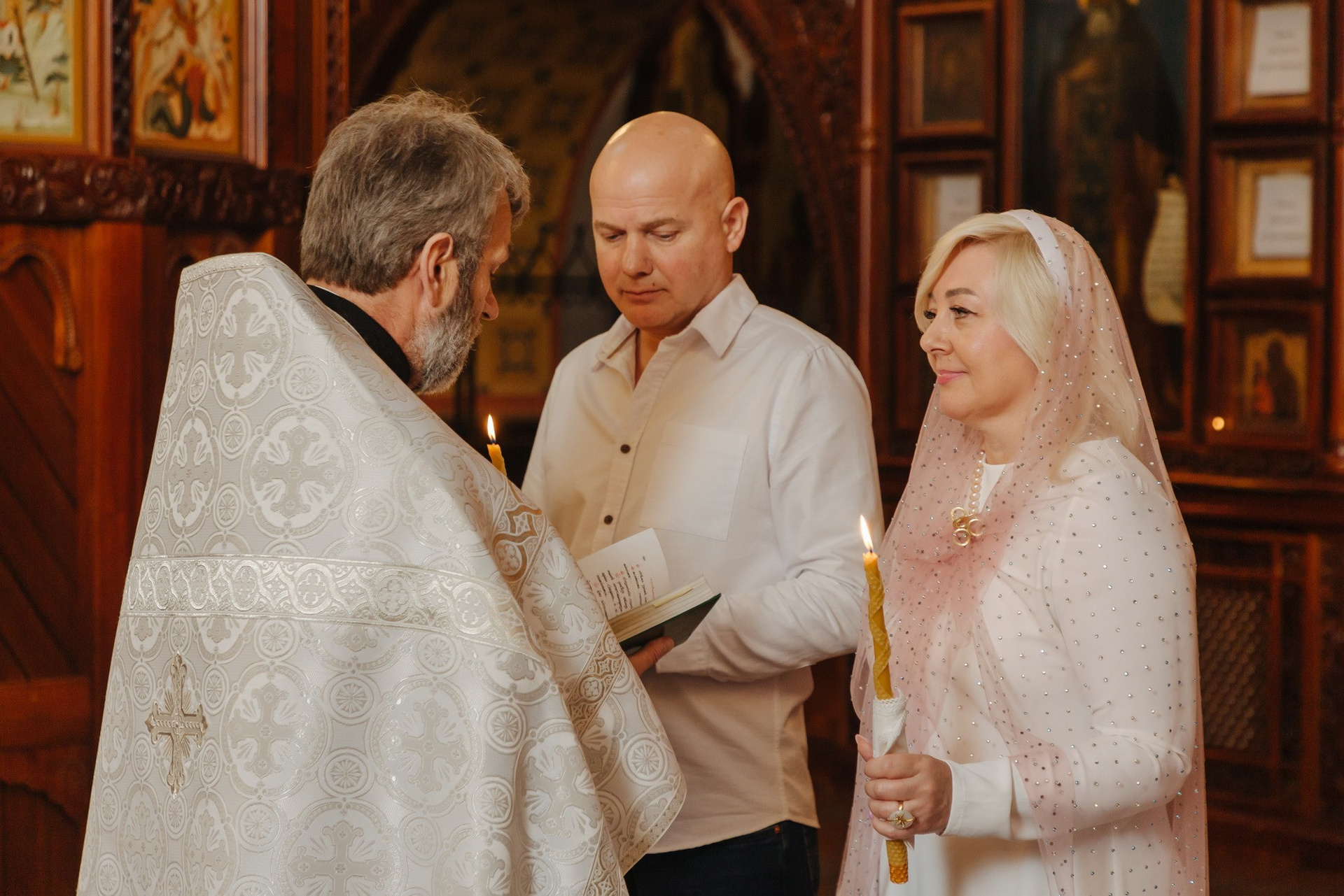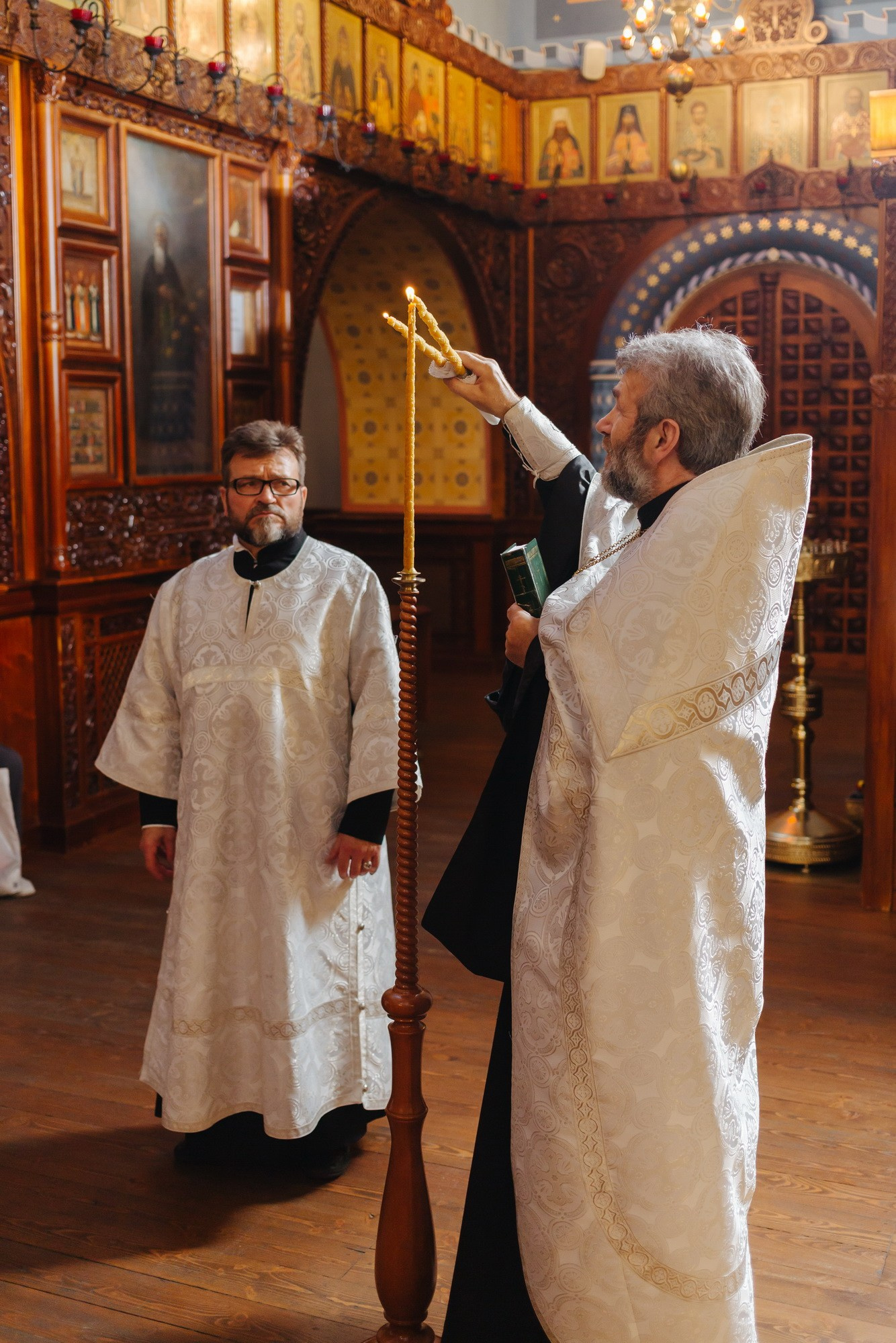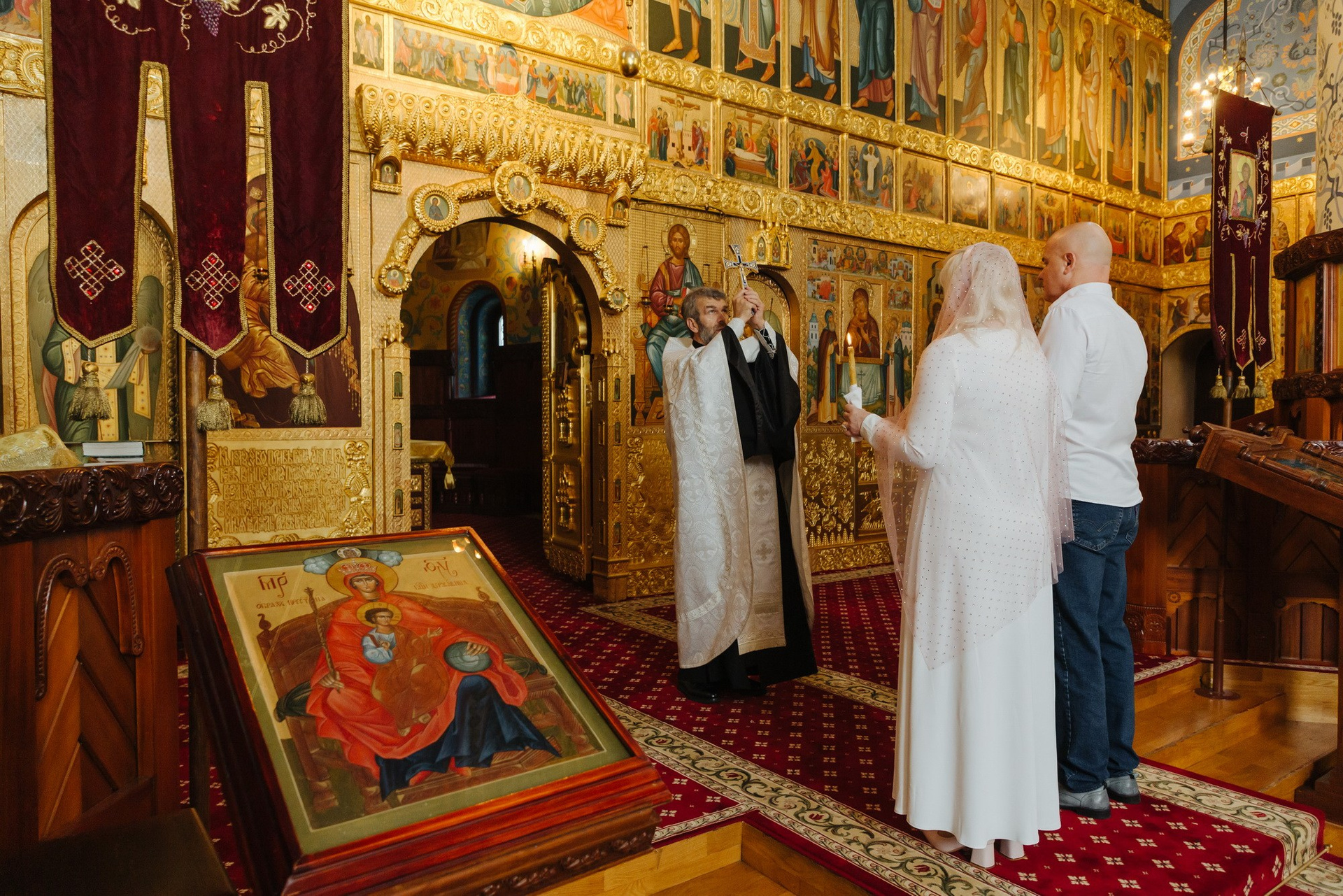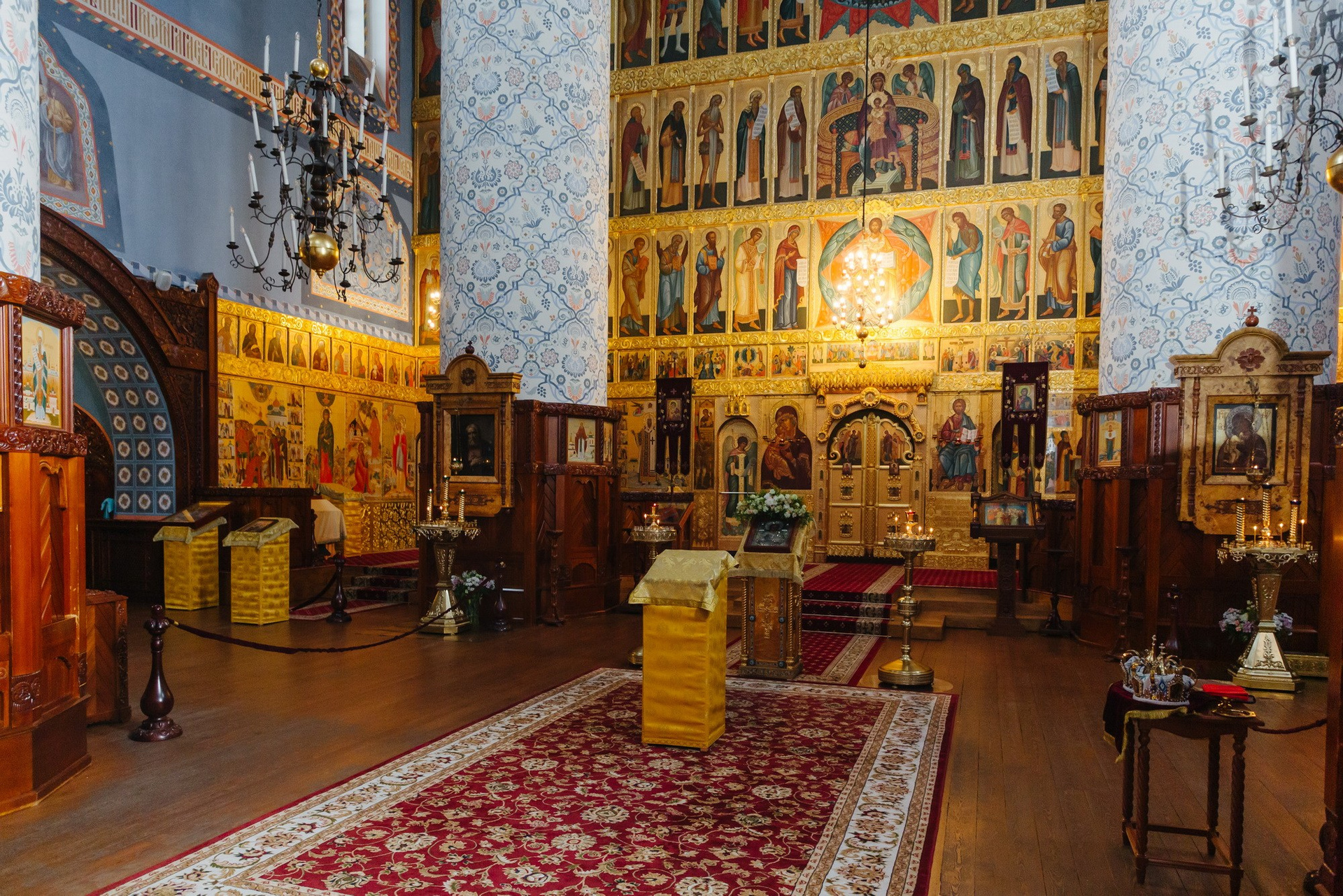 Венчание проходит в верхнем храме собора. Помещение светлое, просторное. Посетителей не так много (будни), продолжительность венчания порядка 45 минут. Стоимость на 2025 г 18 000 руб. Также возможно проведения венчания в нижнем храме собора, тут цена была озвучена 40 000 р.