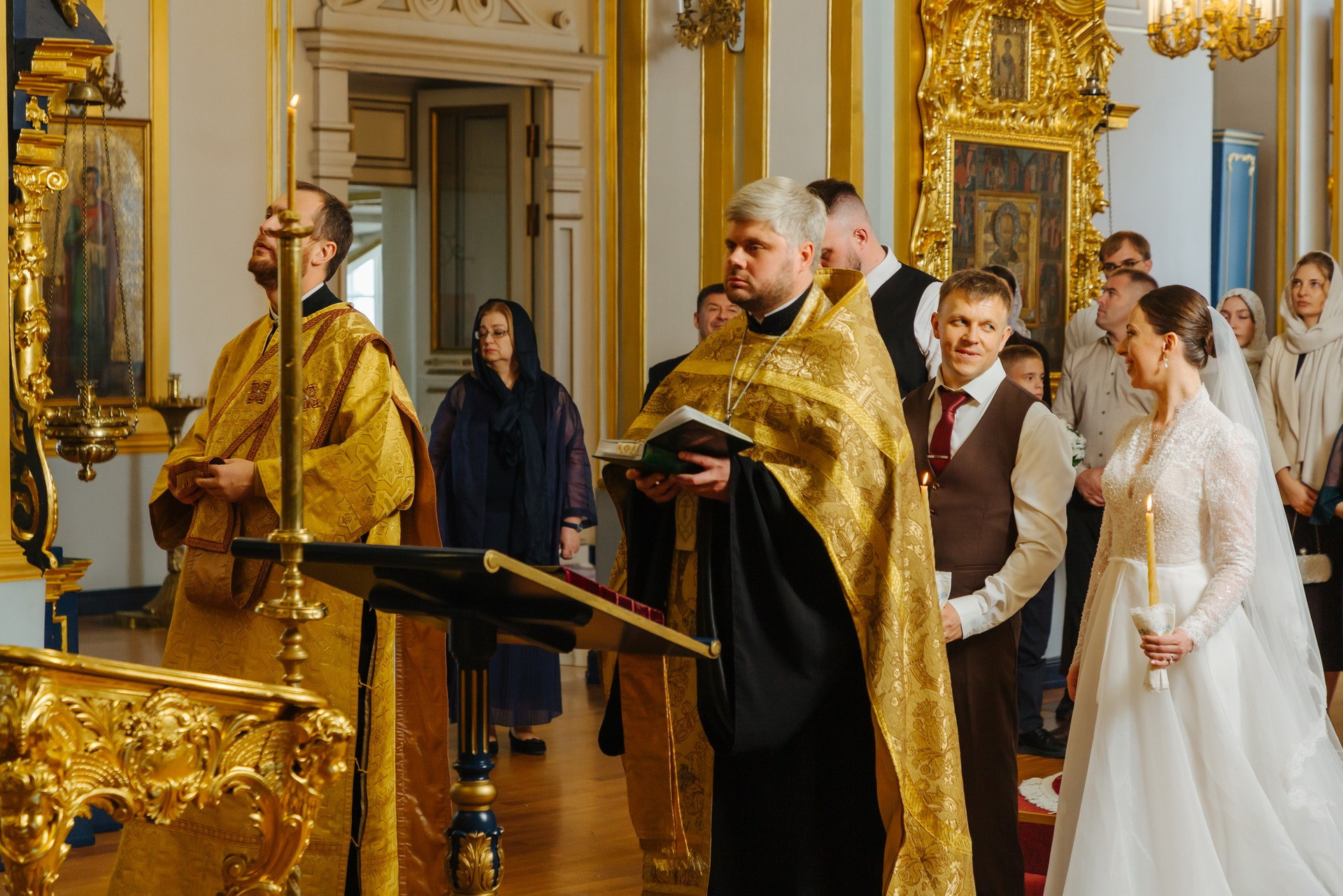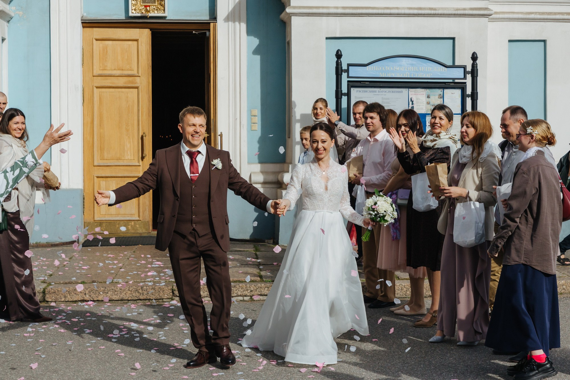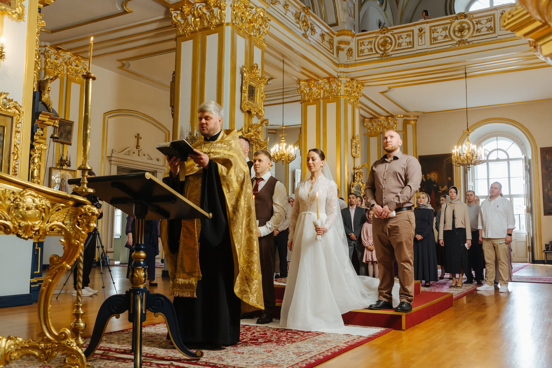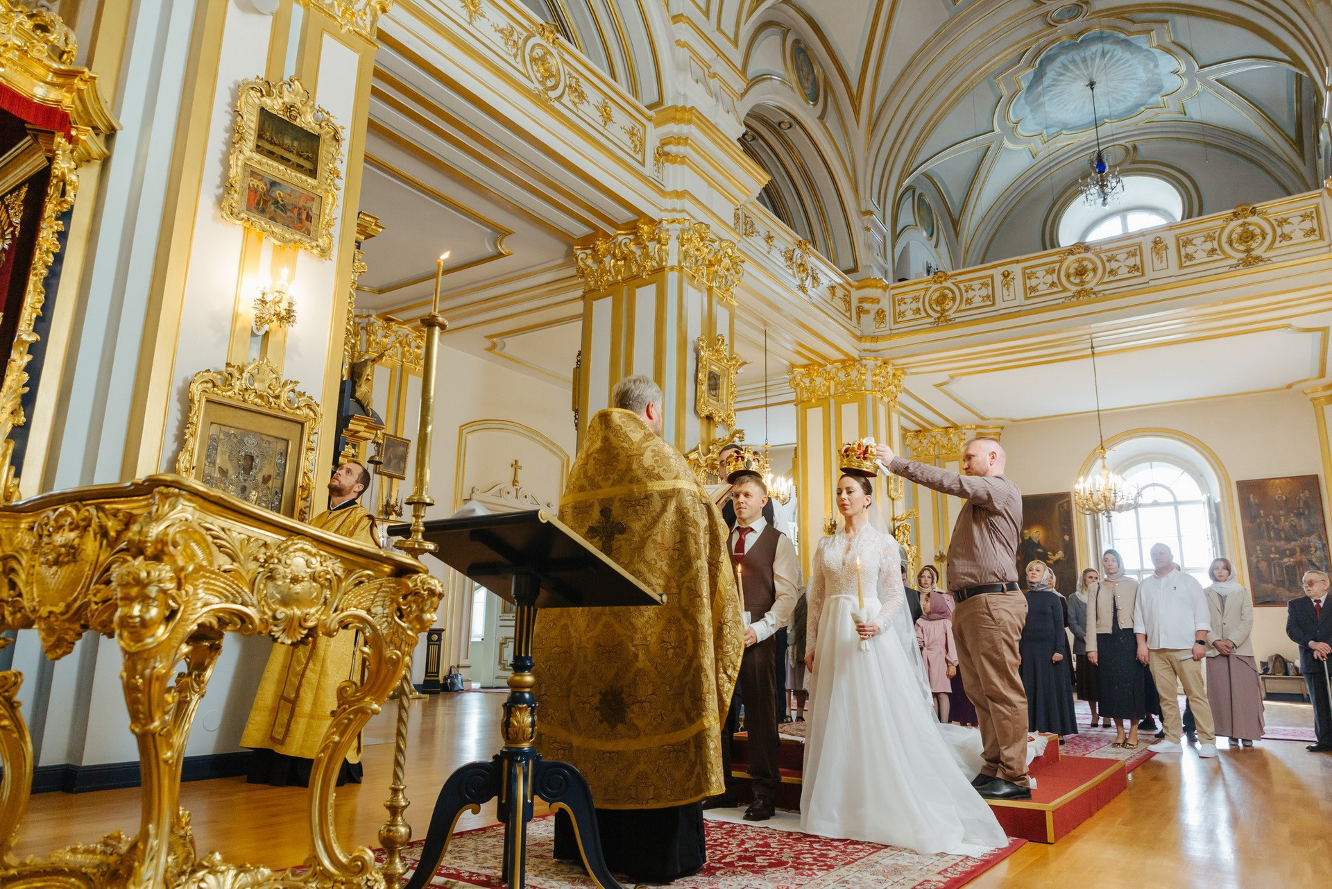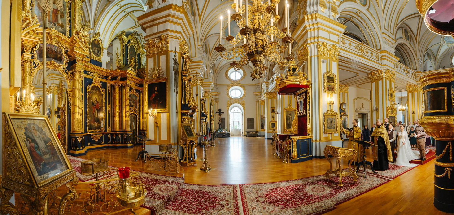 Идеальное место именно для Таинства венчания, т. к. венчание проходит на втором этаже. Доступ во время венчания полностью закрыт от посетителей. Поэтому проходит полностью конфиденциально. Стоимость венчания в 2025 г составляет 16 000 руб + хор + звон колоколов на выходе + оплата разрешения на фотосъемку. Продолжительность венчания в Никольском соборе порядка 45 минут.