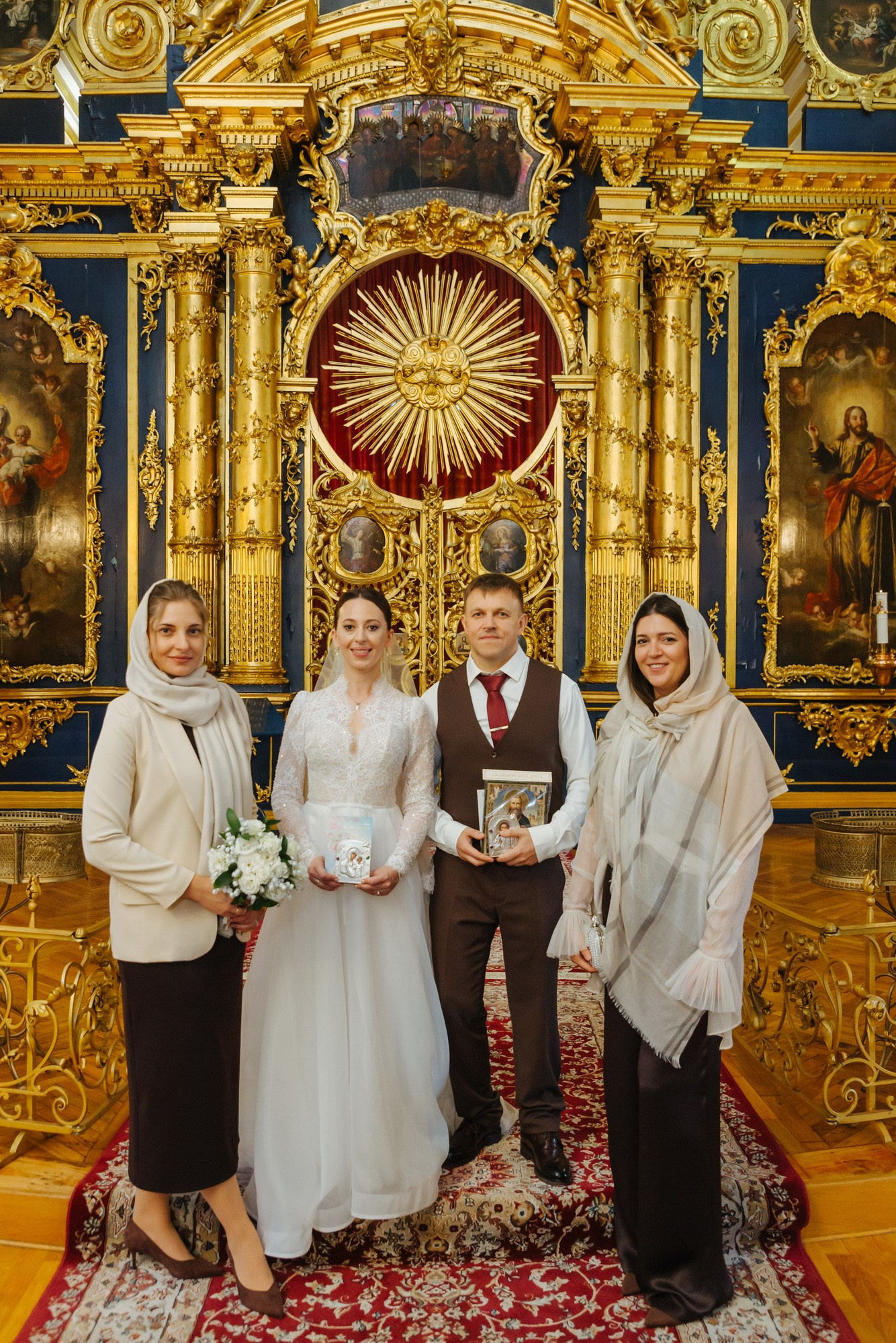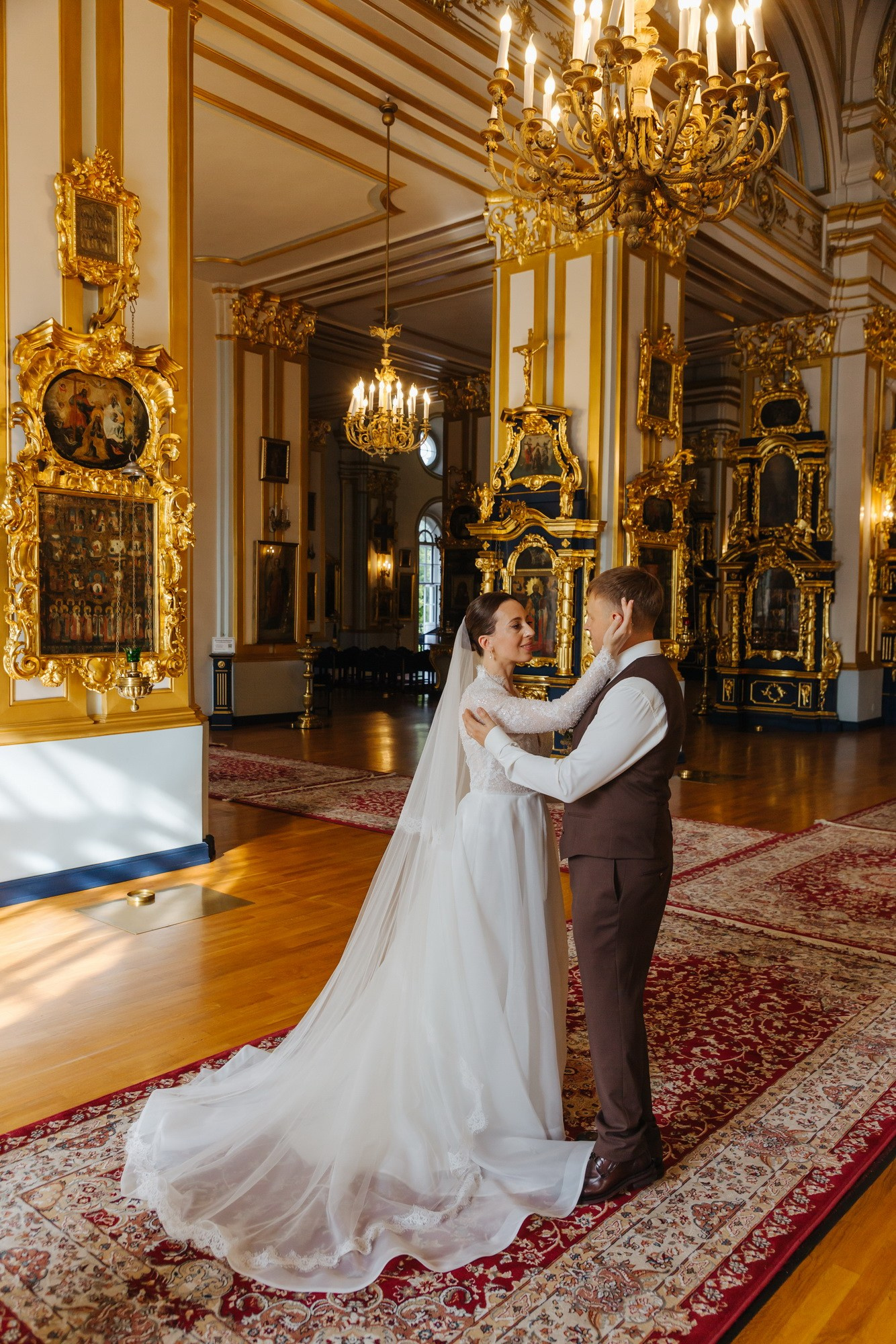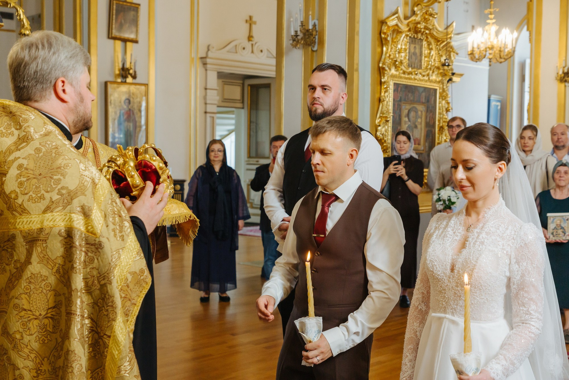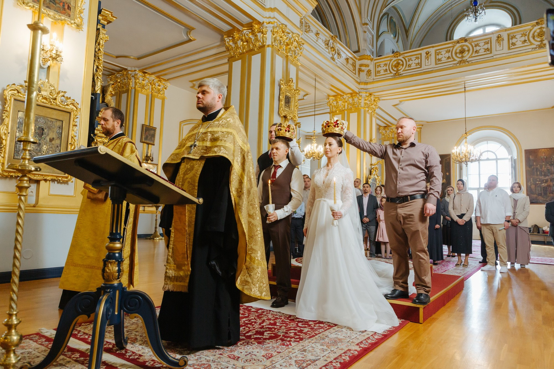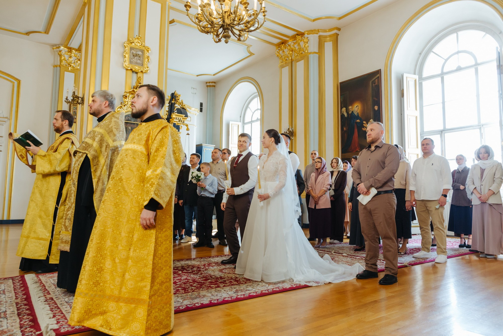 Идеальное место именно для Таинства венчания, т. к. венчание проходит на втором этаже. Доступ во время венчания полностью закрыт от посетителей. Поэтому проходит полностью конфиденциально. Стоимость венчания в 2025 г составляет 16 000 руб + хор + звон колоколов на выходе + оплата разрешения на фотосъемку. Продолжительность венчания в Никольском соборе порядка 45 минут.