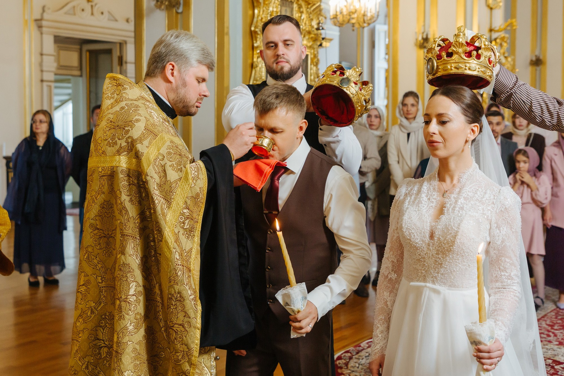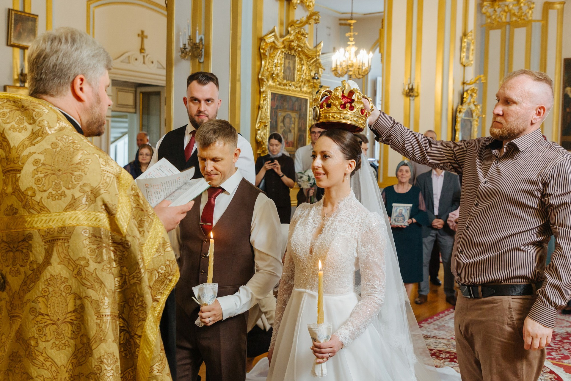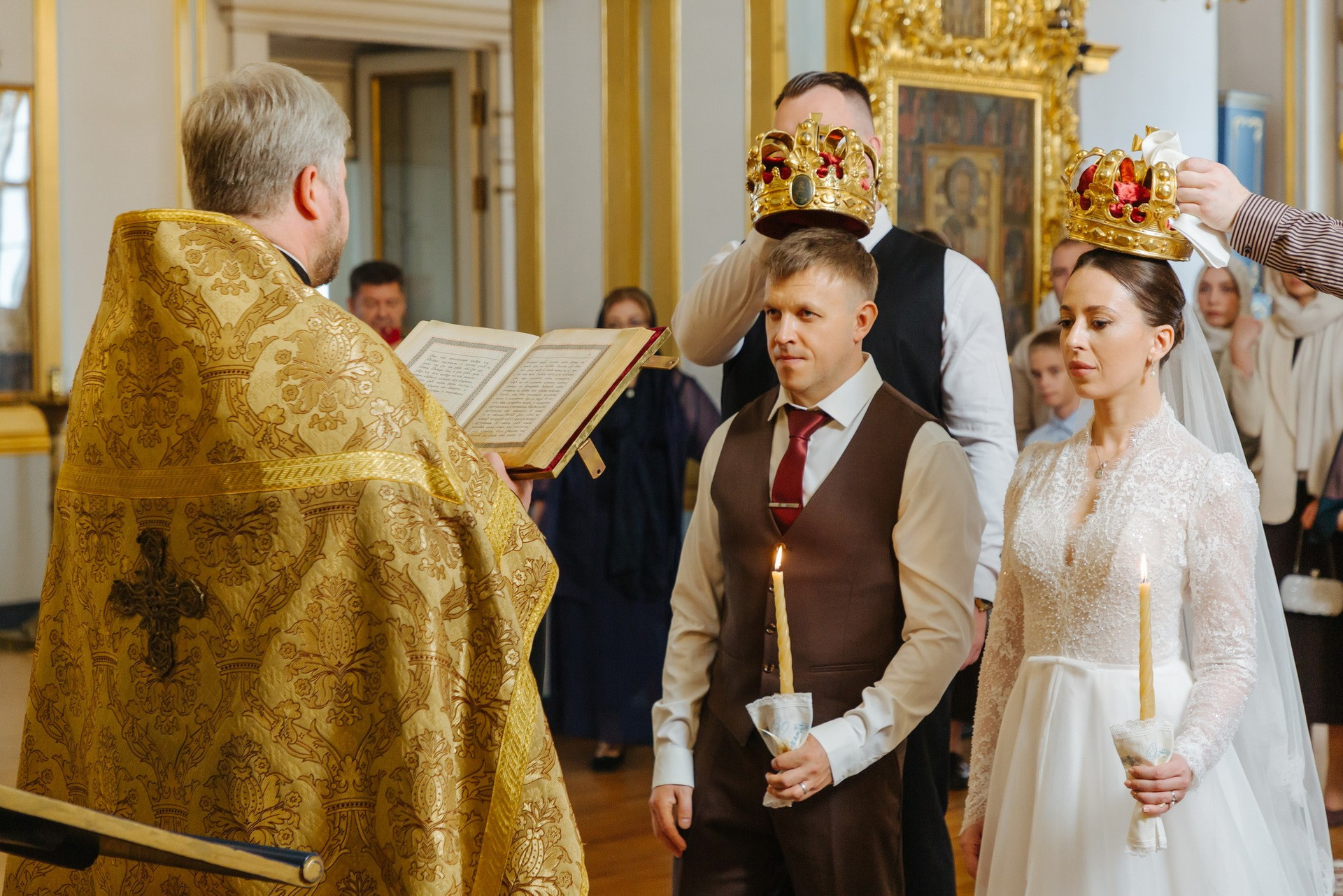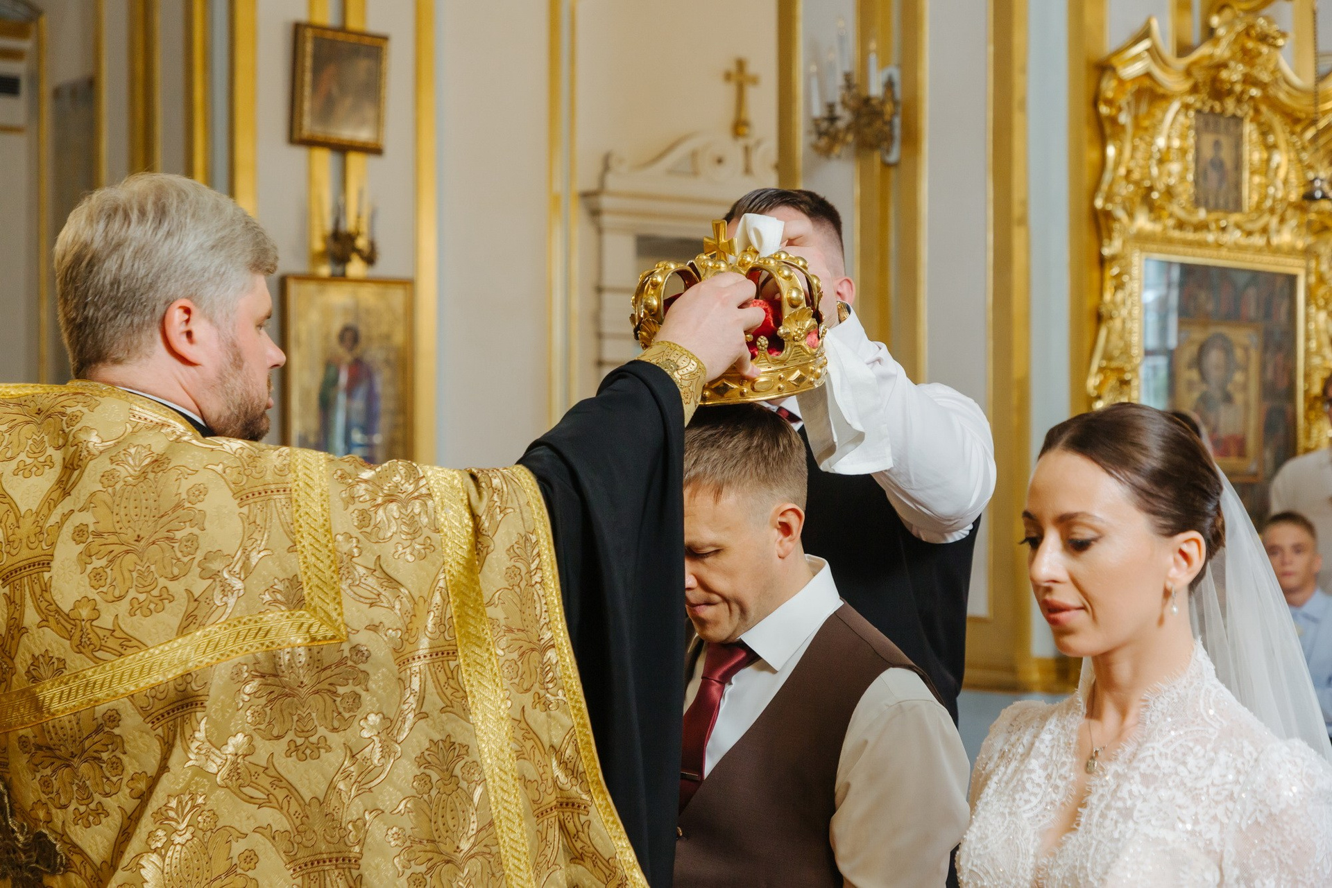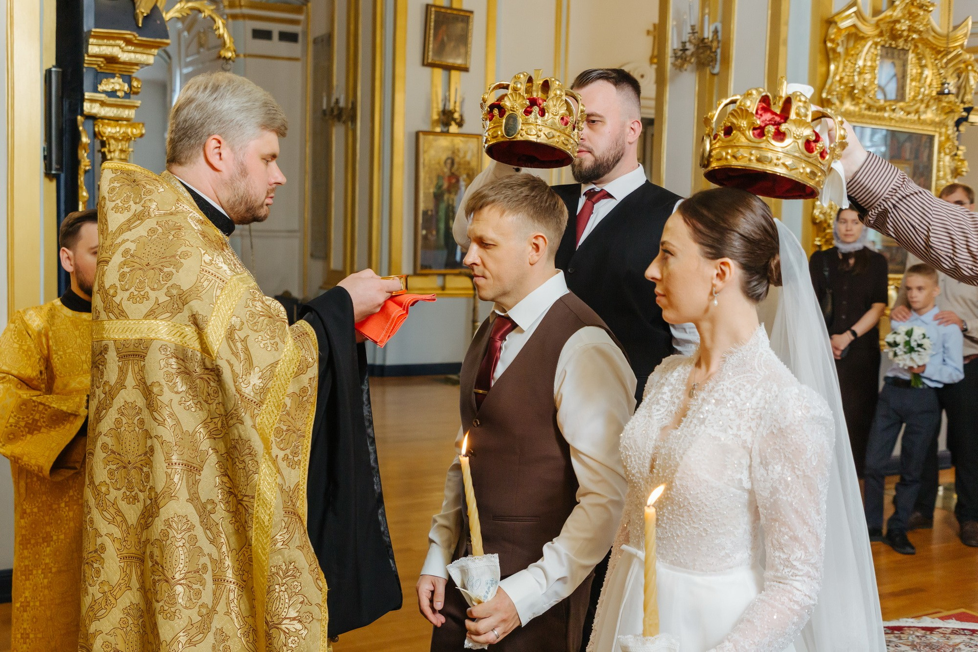 Идеальное место именно для Таинства венчания, т. к. венчание проходит на втором этаже. Доступ во время венчания полностью закрыт от посетителей. Поэтому проходит полностью конфиденциально. Стоимость венчания в 2025 г составляет 16 000 руб + хор + звон колоколов на выходе + оплата разрешения на фотосъемку. Продолжительность венчания в Никольском соборе порядка 45 минут.