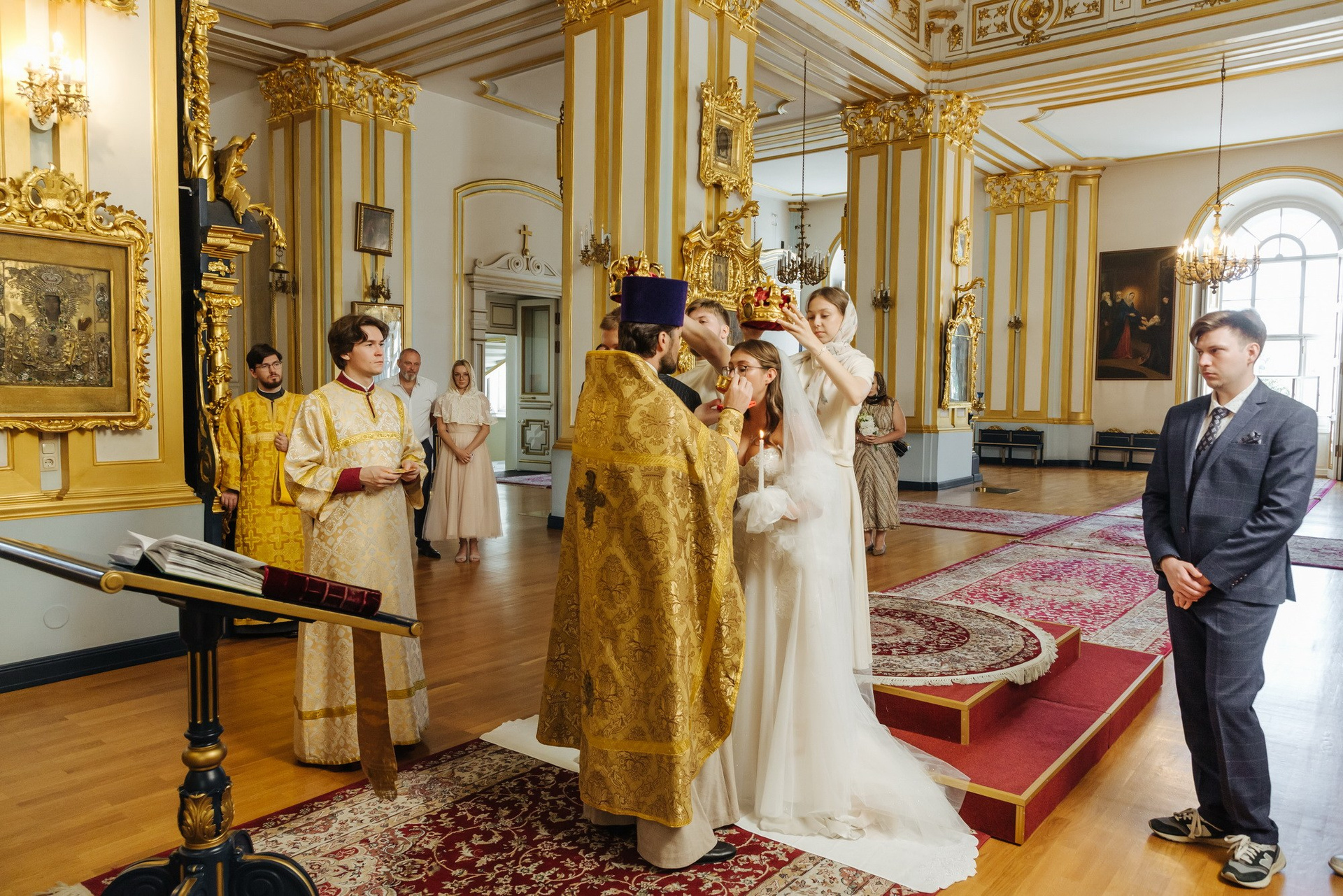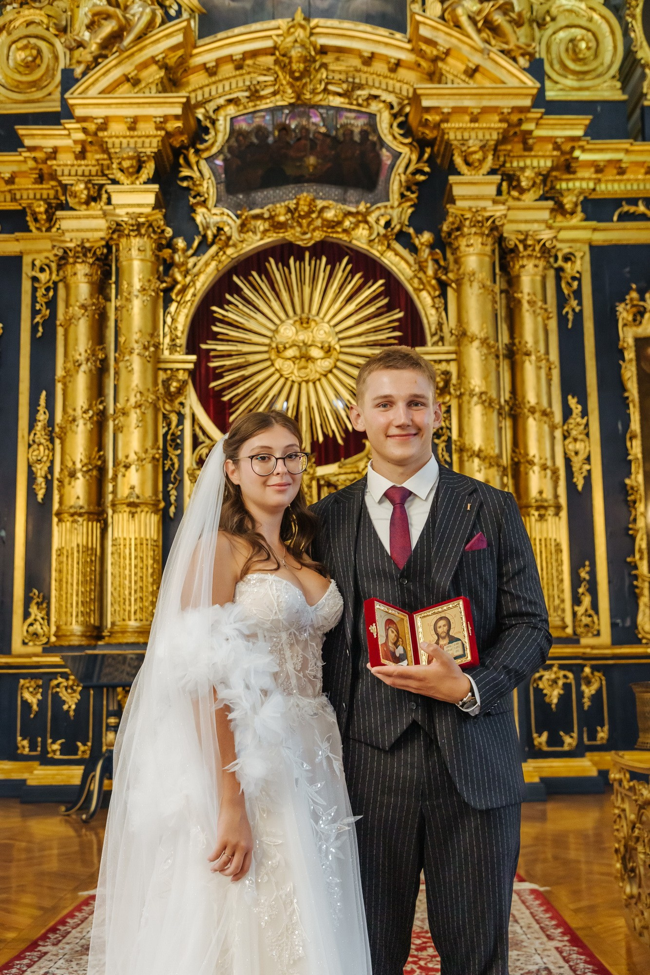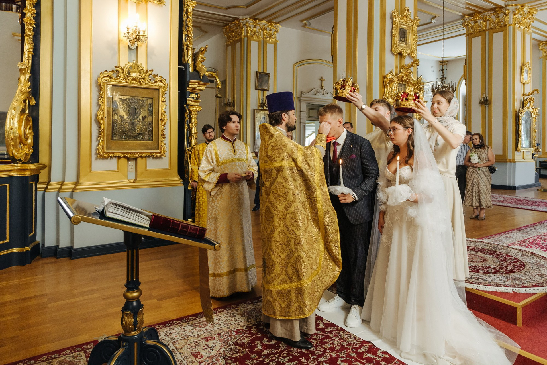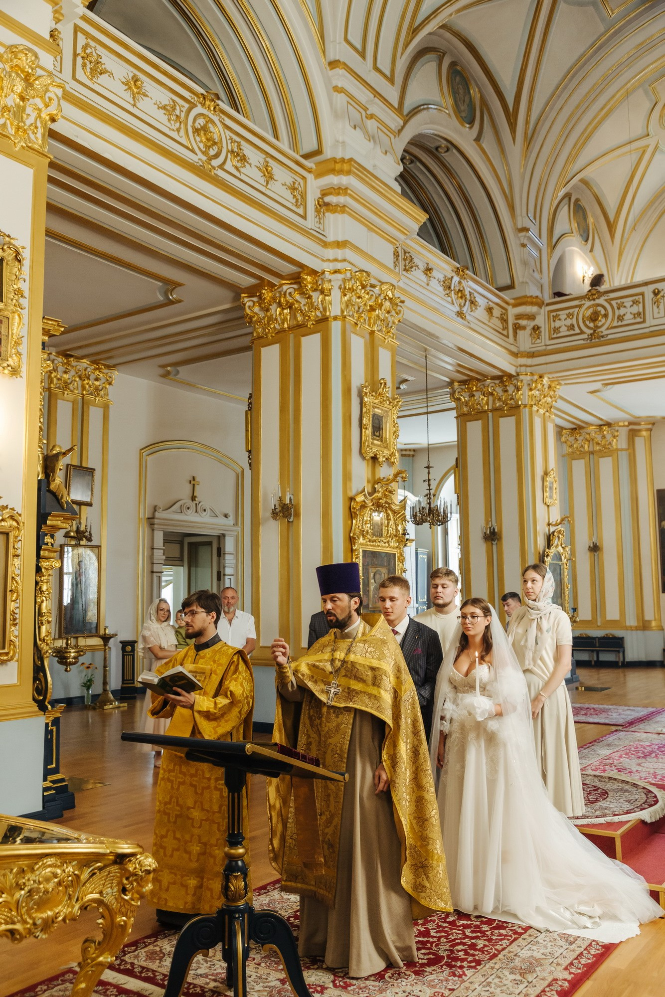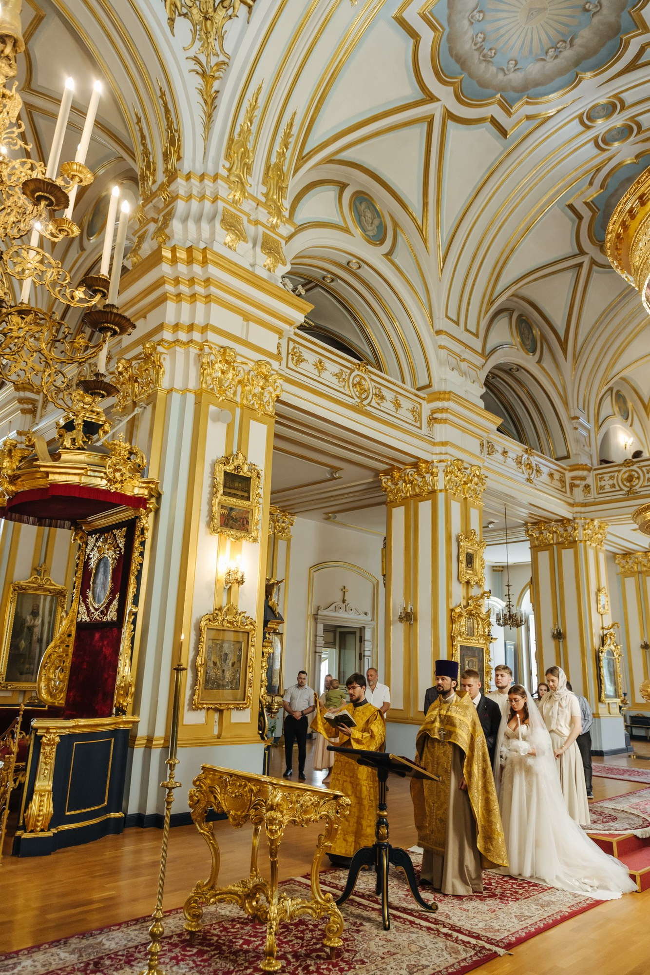 Венчание в Никольском Богоявленском морском соборе, Санкт Петербург. Длительность венчания порядка 40 минут, проходит на втором этаже собора. Полностью закрытое от посещения туристов и прихожан. Стоимость венчания на лето 2025 г было 15 000 руб. Плюс по желанию за доп плату можно организовать звон колоколов после выхода из церкви (актуально, если у вас заказано видео). Есть знакомый батюшка в соборе, который может поспособствовать с проведением венчания и записью.