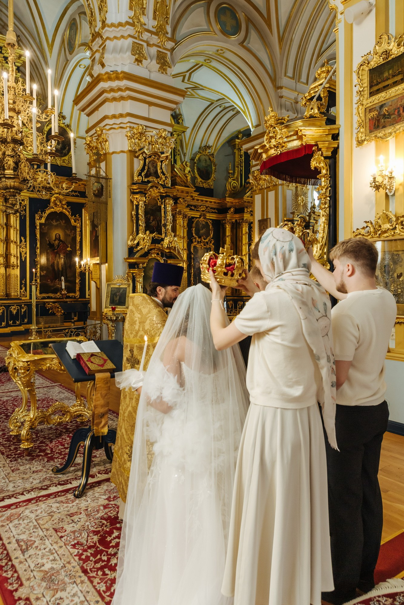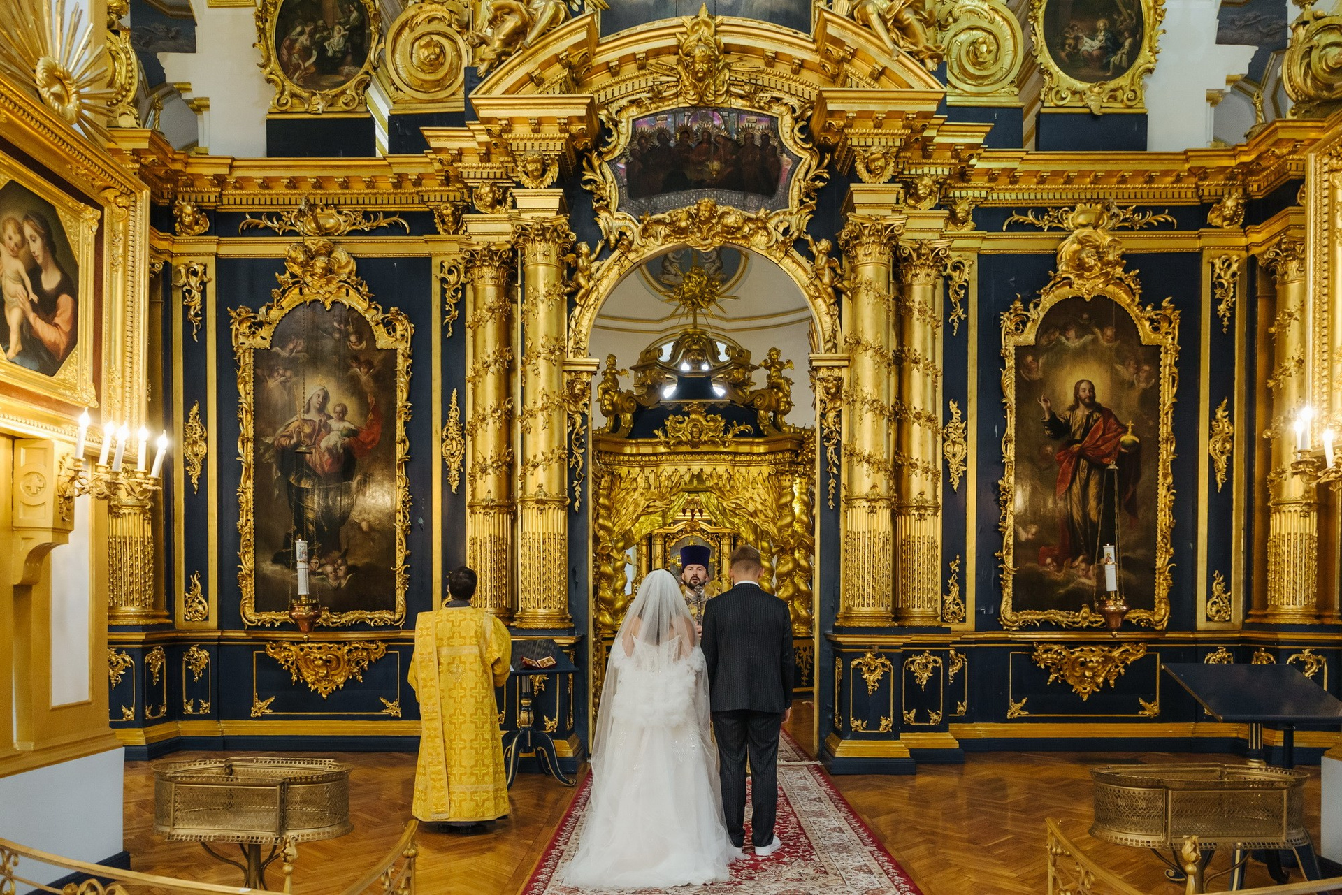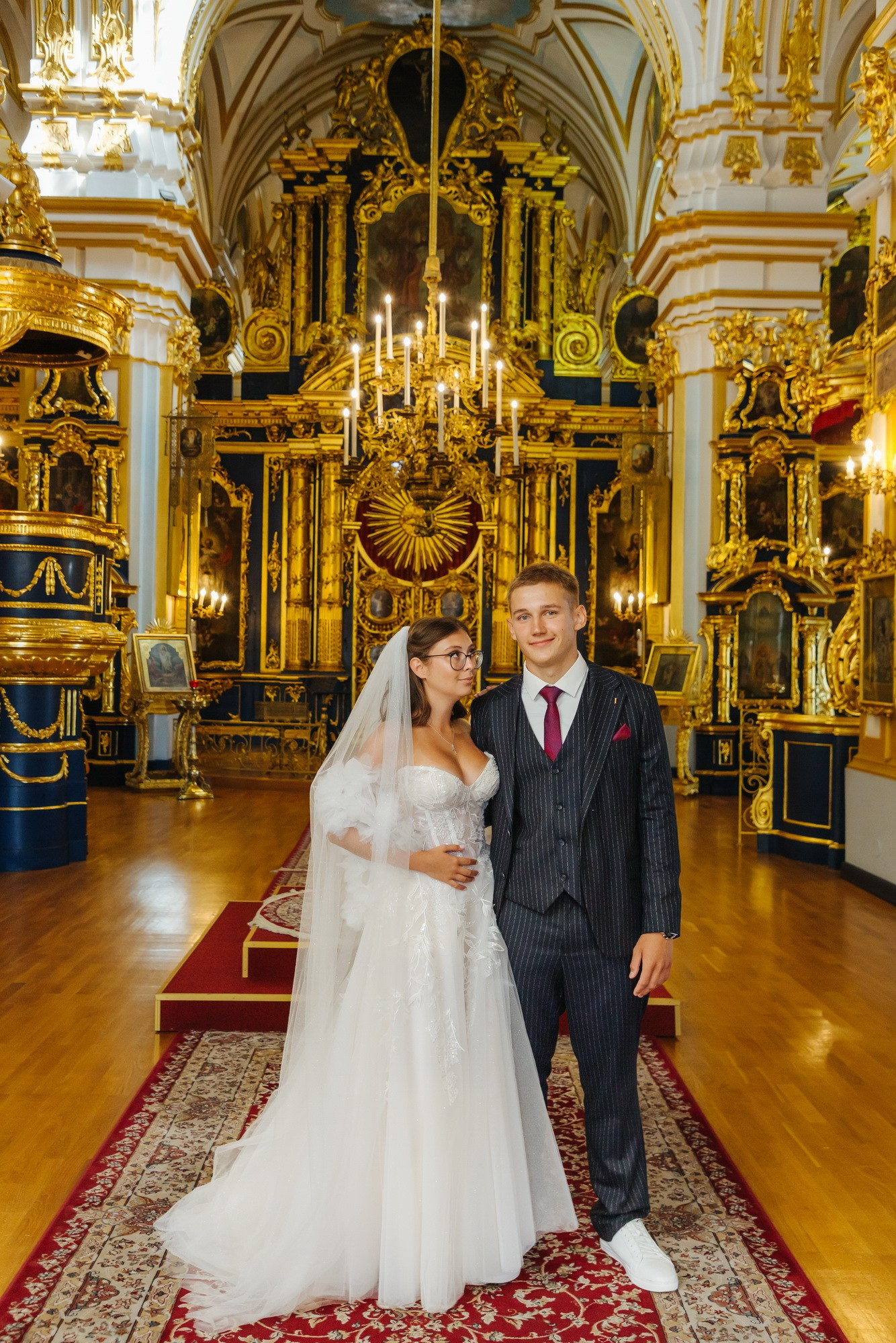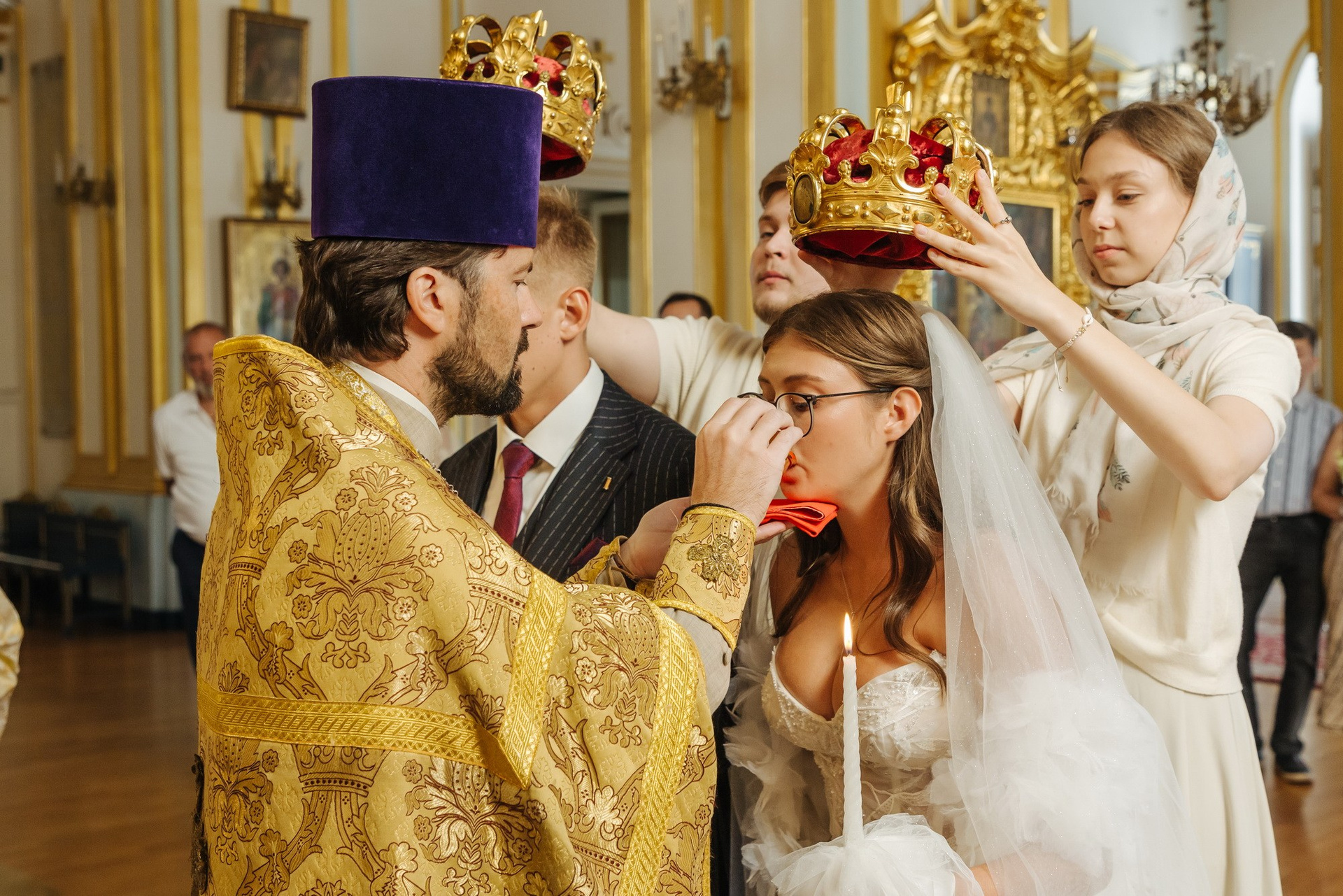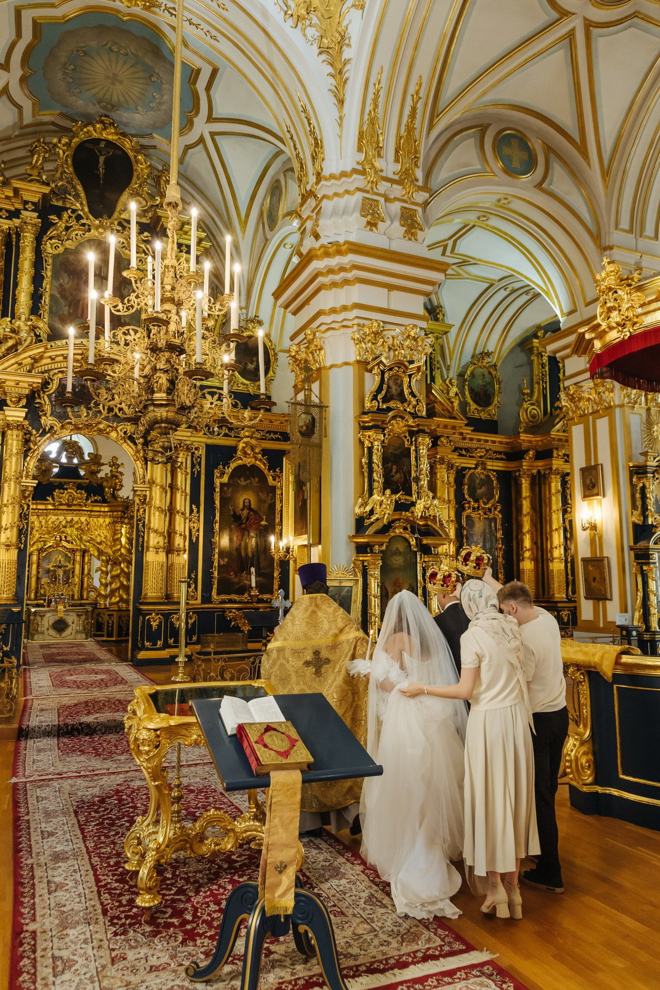 Венчание в Никольском Богоявленском морском соборе, Санкт Петербург. Длительность венчания порядка 40 минут, проходит на втором этаже собора. Полностью закрытое от посещения туристов и прихожан. Стоимость венчания на лето 2025 г было 15 000 руб. Плюс по желанию за доп плату можно организовать звон колоколов после выхода из церкви (актуально, если у вас заказано видео). Есть знакомый батюшка в соборе, который может поспособствовать с проведением венчания и записью.