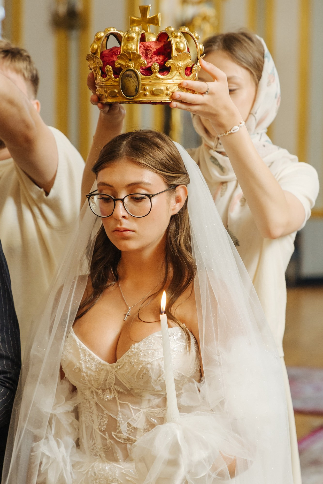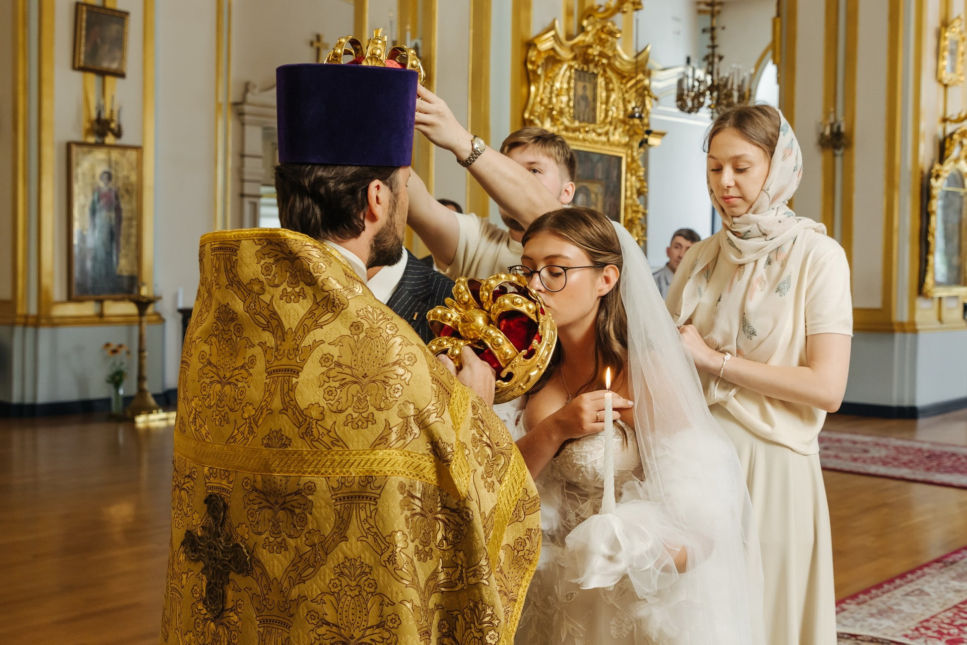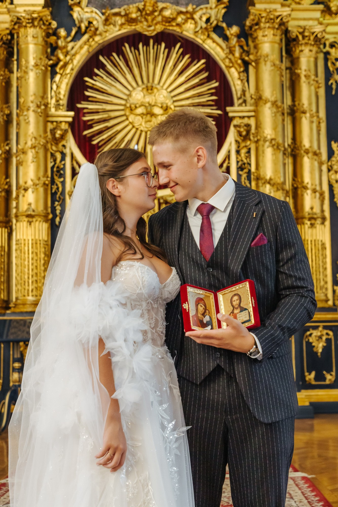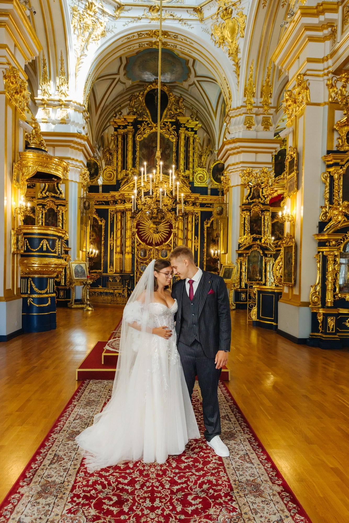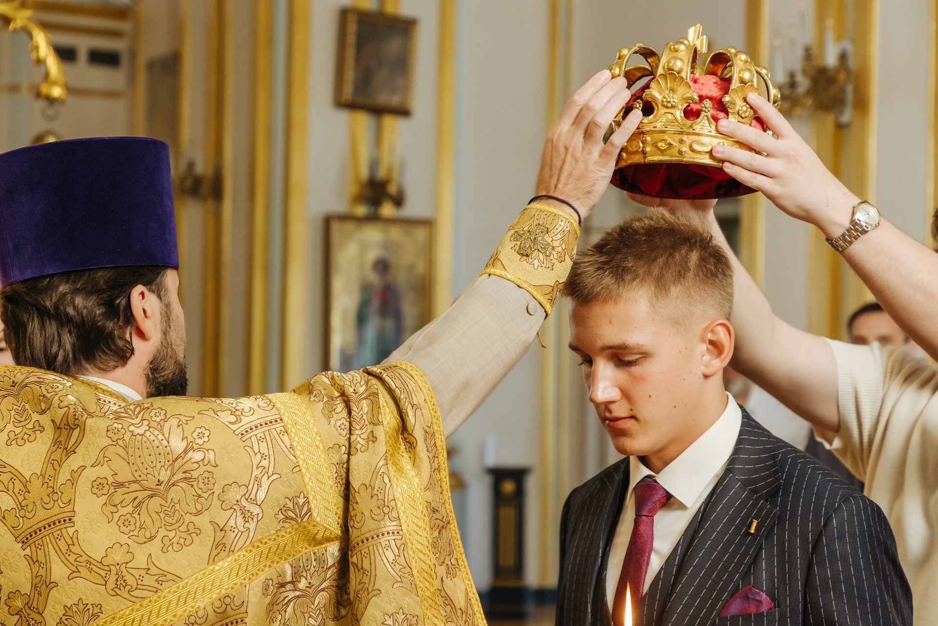 Венчание в Никольском Богоявленском морском соборе, Санкт Петербург. Длительность венчания порядка 40 минут, проходит на втором этаже собора. Полностью закрытое от посещения туристов и прихожан. Стоимость венчания на лето 2025 г было 15 000 руб. Плюс по желанию за доп плату можно организовать звон колоколов после выхода из церкви (актуально, если у вас заказано видео). Есть знакомый батюшка в соборе, который может поспособствовать с проведением венчания и записью.